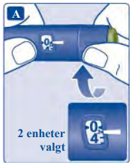 Vri dosevelgeren for å stille inn 2 enheter. Kontroller at dosetelleren viser 2.