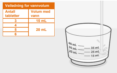 Når alle tablettene i boksen er brukt opp eller ikke trengs lenger, kastes boksen og begeret.