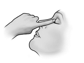 5. Lukk øyet og trykk på indre øyekrok med en finger i ca. to minutter. Dette forhindrer at legemidlet tas opp i resten av kroppen.