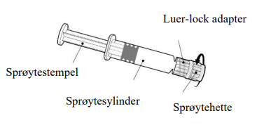 Ikke trekk sprøytestempelet ut av sprøytesylinderen. Hvis det skjer, skal vaksinen ikke administreres.