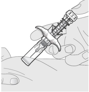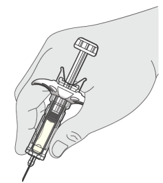 Hold sprøytesylinderen til den ferdigfylte sprøyten i én hånd mellom tommel og pekefinger (se figur 5).