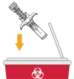 Kast brukte sprøyter umiddelbart etter bruk i en punkturresistent beholder, f.eks. en kanylebøtte i henhold til lokale retningslinjer. Ikke kast løse sprøyter i husholdningsavfallet (se figur 10).