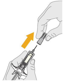 Fjern kanylehetten når du er klar til å injisere Uzpruvo.