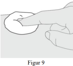Trykk en bomullsdott eller gasbind over injeksjonsstedet i noen sekunder etter injeksjonen (se figur 9).