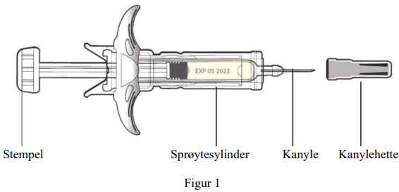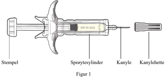 Figur 1 viser hvordan den ferdigfylte sprøyten med Uzpruvo ser ut.