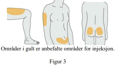 Bruk et nytt injeksjonssted for hver injeksjon. Ikke sett en injeksjon i et område av huden som er ømt, som har blåmerker, som er rødt eller hardt.