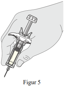 Hold sprøytesylinderen til den ferdigfylte sprøyten i én hånd mellom tommel og pekefinger (se figur 5).