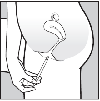 Vaginaltabletten føres inn i skjeden med applikatoren.