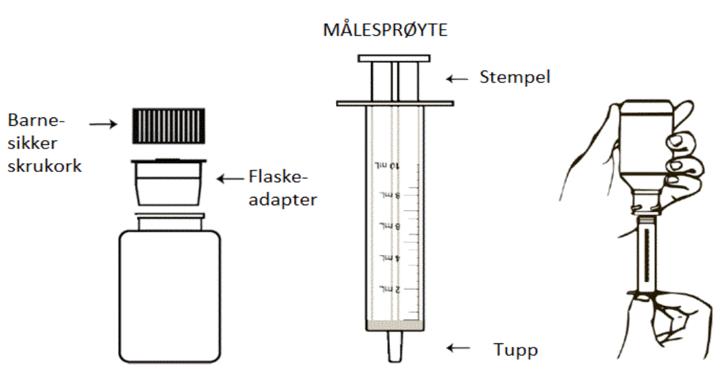 Tøm miksturen rett i munnen og svelg. Ikke bland miksturen med annen væske.