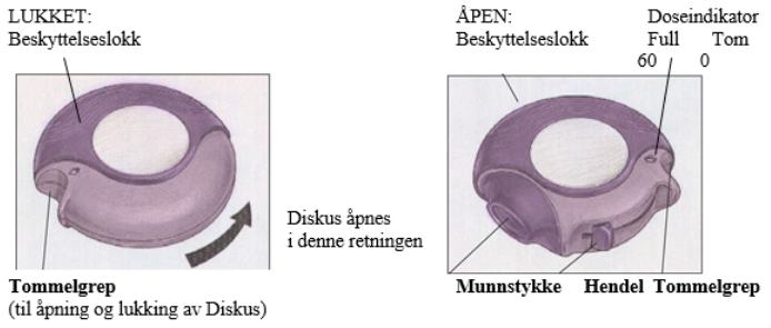 Pakningstype: 60 doser inhalasjonspulver i Diskus inhalator