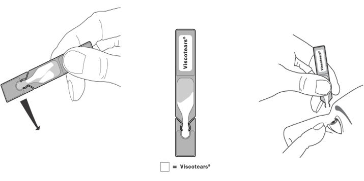 Viscotears øyegel er steril inntil endosebeholderen blir åpnet. Endosebeholderen skal brukes umiddelbart etter åpning. Spissen på endosebeholderen må ikke berøre noe, inkludert øyet, da dette kan forårsake skade på øyet og kontaminere (forurense) gelen. Endosebeholderen og en eventuell restmengde må ikke spares, men kastes etter bruk.