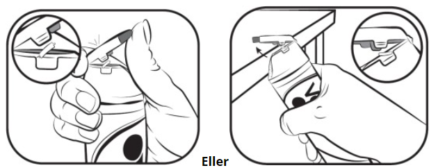 Forseglingen som er plassert på hver side av flipp-korken, vil bryte når korken åpnes for første gang. Kontroller at forseglingen ikke er brutt, før første gangs bruk.