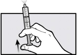 15. Hold målesprøyten slik at spissen peker oppover. Press stempelet sakte inn for å fjerne det meste av luften.