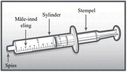 Instruksjoner for omsorgspersoner som klargjør suspensjonen ved bruk av en målesprøyte: