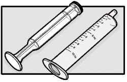 10 ml målesprøyte med 1 ml måleintervaller (til engangsbruk): se figur under