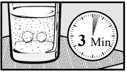 6. Vent i 3 minutter til de dispergerbare tablettene er fullstendig oppløst.