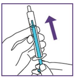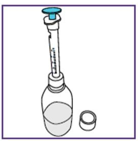 Etter å ha satt dosen kan den blå sprøyten brukes til alle administreringer fra flasken med suspensjon som ble klargjort i trinn 1.