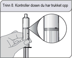 Kontroller at du har trukket opp riktig dose i doseringssprøyten.