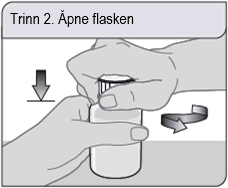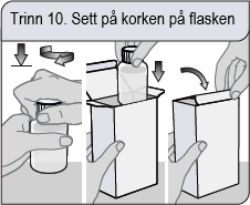 Snu flasken riktig vei, og sett den på en plan overflate. Fjern doseringssprøyten fra adapteren og flasken ved å trekke sprøytesylinderen rett opp.