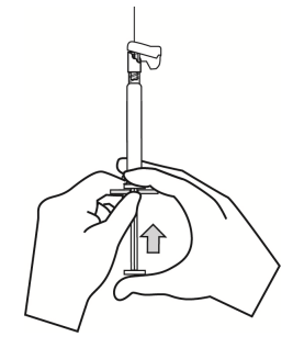 6. Hold sprøyten med den påfestede kanylen med kanylen opp for å slippe ut luft. Slipp ut luft fra sprøyten ved å trykke stempelstangen forsiktig oppover.