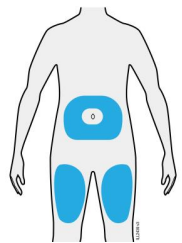 Viktig: Unngå områder med arr, strekkmerker eller områder der huden er øm, skadet, rød eller hard.