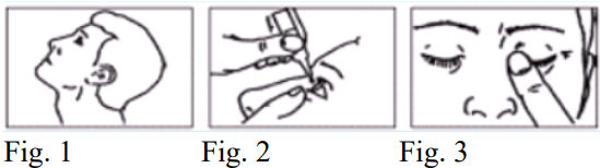 Lukk øyet og press forsiktig i ca. 1-2 minutter på øyelokkets innerste øyekrok. På den måten forhindres øyedråpene i å renne ned i svelget via tårekanalen (fig. 3). Gjenta ved behov fra punkt 3 til 5 for det andre øyet.