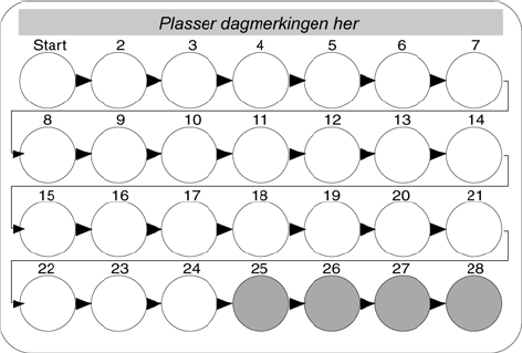 De 4 gule filmdrasjerte tablettene er inaktive tabletter som ikke inneholder hormoner og kalles placebotabletter.
